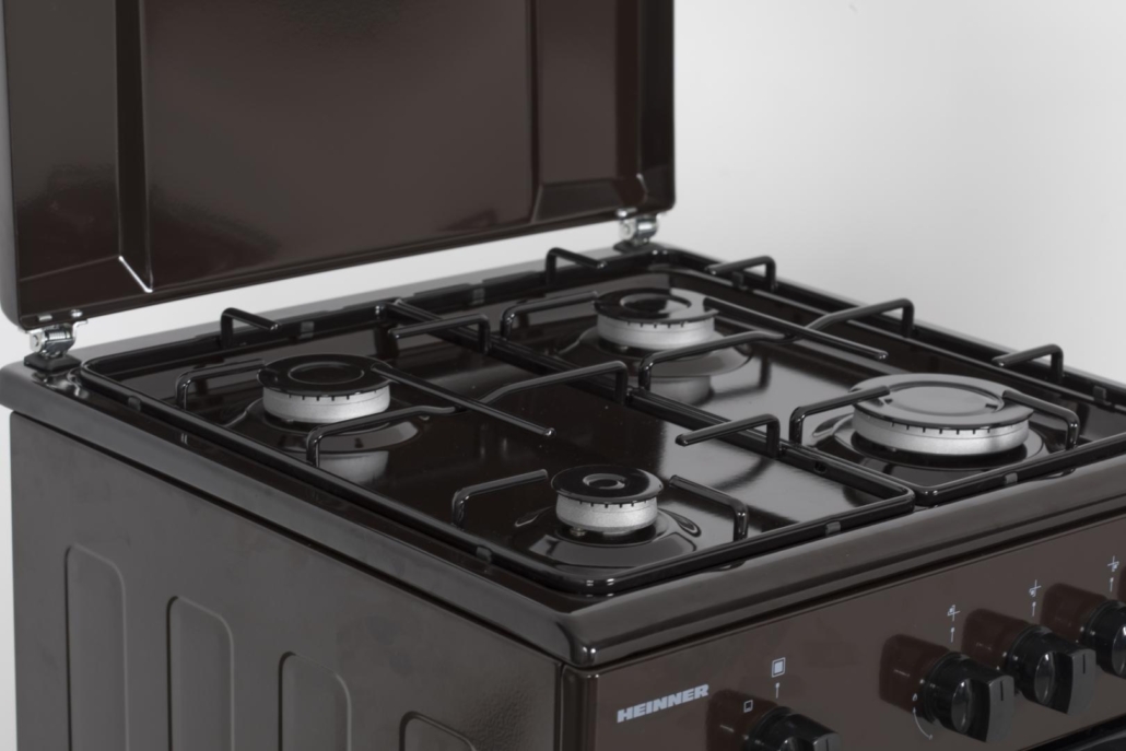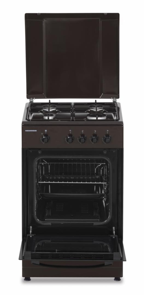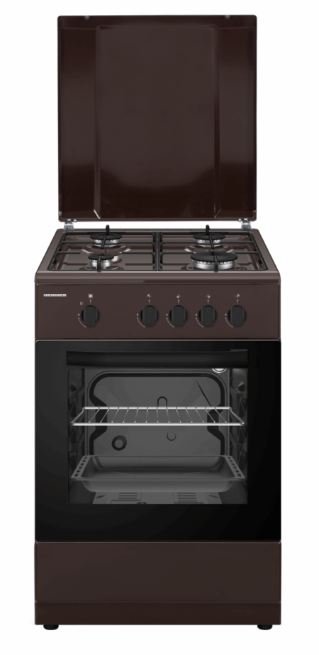 GAS COOKER HEINNER HFSC-SME50BRW, 50X50CM, 4 GAS BURNERS, ENAMEL PAN SUPPORT, METAL LID, GAS SAFETY HOB AND OVEN, DOUBLE GLASS OVEN DOOR, NG SETTLED, SPARE LPG NOZZLES INCLUDED, OVEN TRAY AND GRID, DIMENSIONS (WXDXH): 49.8X50X85 CM, COLOR: BROWN