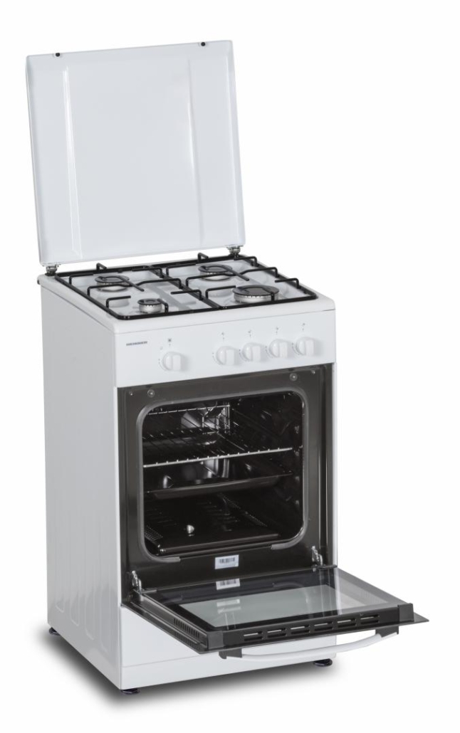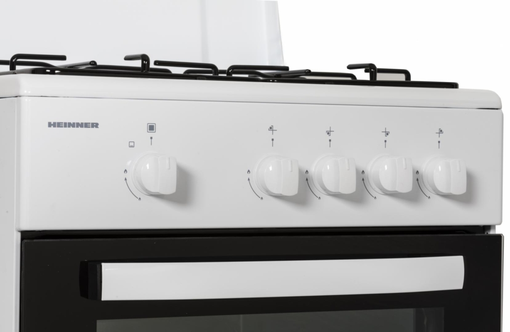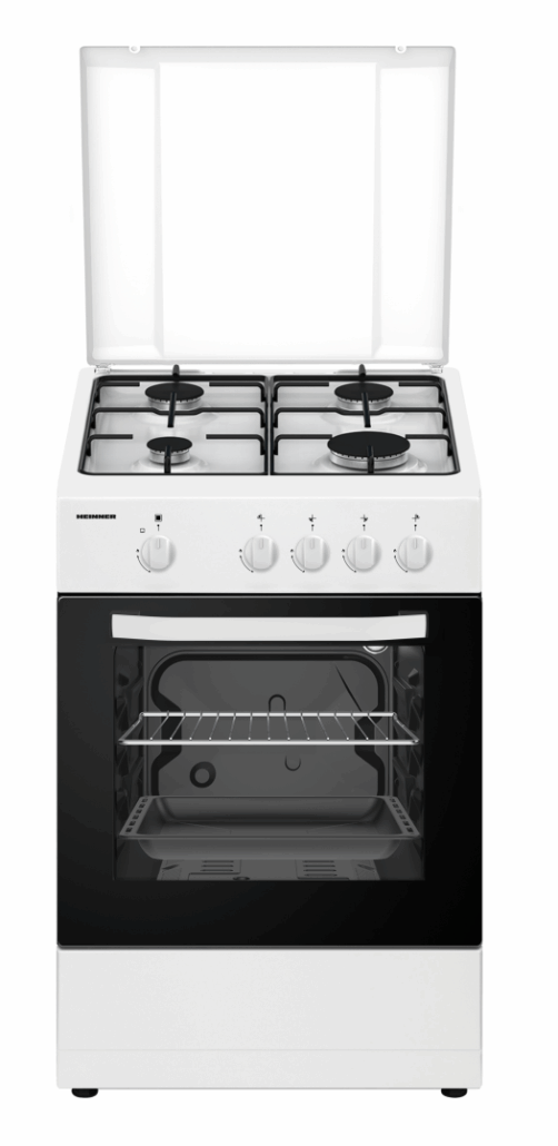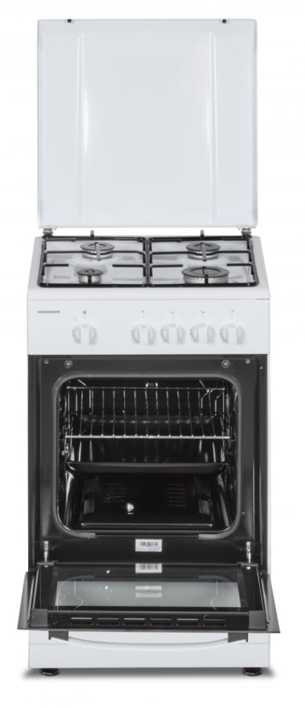 GAS COOKER HEINNER HFSC-SME50WH, 50X50CM, 4 GAS BURNERS, ENAMEL PAN SUPPORT, METAL LID, GAS SAFETY HOB AND OVEN, DOUBLE GLASS OVEN DOOR, NG SETTLED, SPARE LPG NOZZLES INCLUDED, OVEN TRAY AND GRID, DIMENSIONS (WXDXH): 49.8X50X85 CM, COLOR: WHITE