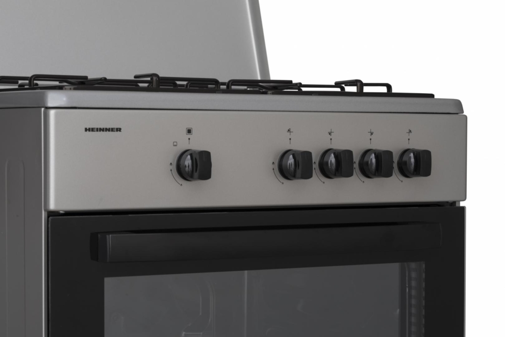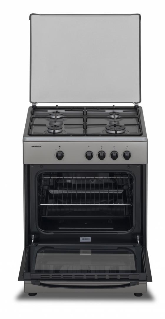 GAS COOKER HEINNER HFSC-SME60SL, 60X55CM, 4 GAS BURNERS, ENAMEL PAN SUPPORT, METAL LID, GAS SAFETY HOB AND OVEN, DOUBLE GLASS OVEN DOOR, NG SETTLED, SPARE LPG NOZZLES INCLUDED, OVEN TRAY AND GRID, DIMENSIONS (WXDXH): 60X55X85 CM, COLOR: SILVER