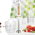 Hand blender Heinner Bestmix HB-DC600WH, DC motor, variable speed + Turbo, stainless steel blender rod, stainless steel blades, chopper 500 ml, measuring cup 700 ml, stainless steel whisk, elegant design with wood, chrome decoration, noise level: 85dB, power: 600W
