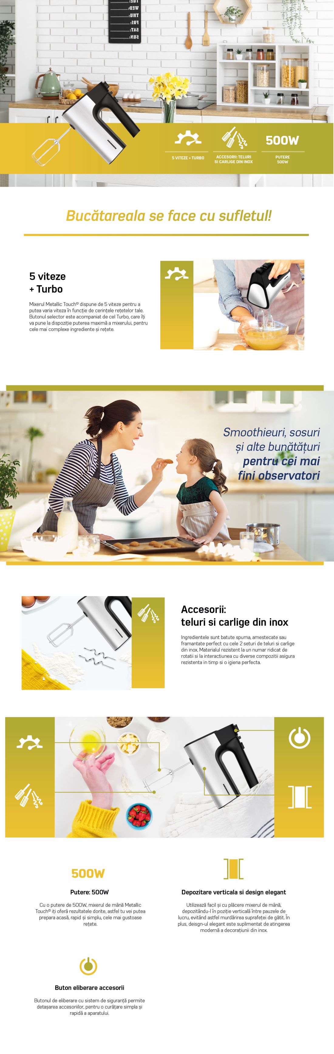 HAND MIXER HEINNER HM-500BKSS, POWER: 500W, VARIABLE SPEEDS, ACCESSORIES: STAINLESS STEEL