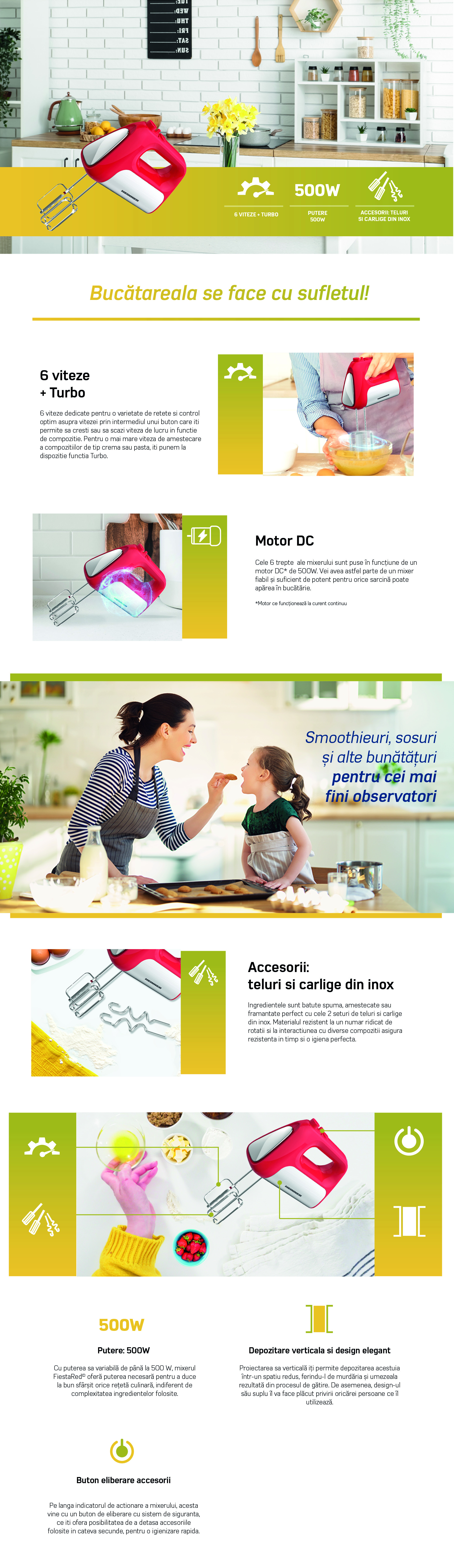 HAND MIXER HEINNER HM-DC500RD, 500W, DC MOTOR, 6 SPEEDS + TURBO, ACCESSORIES: STAINLESS ST