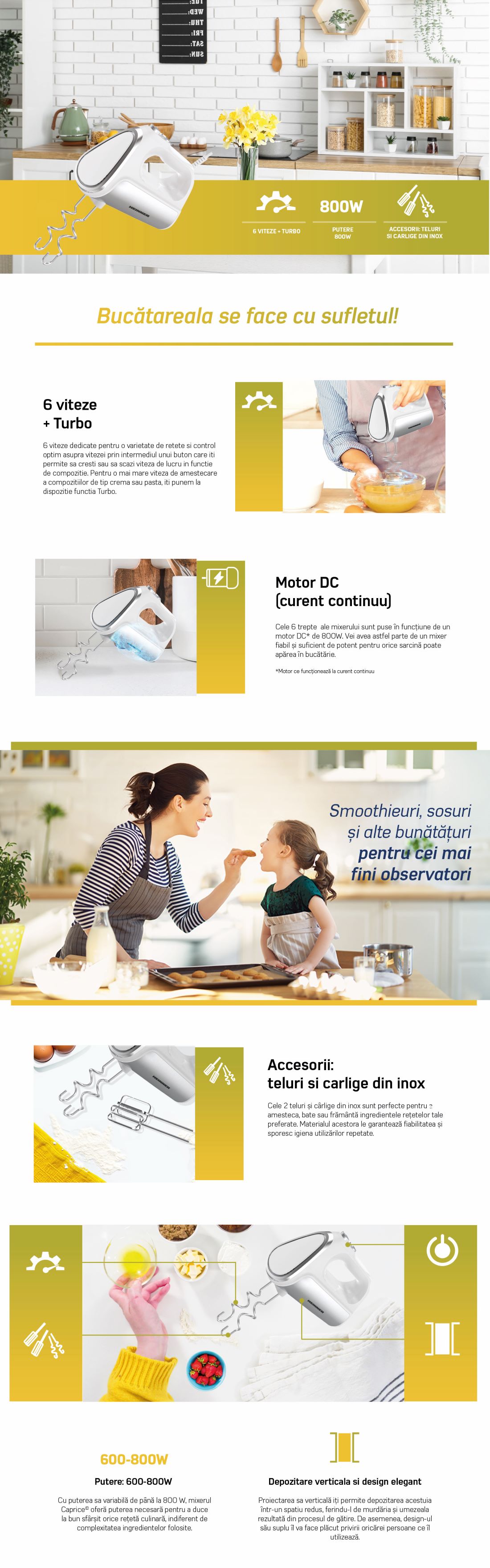 HAND MIXER HEINNER HM-DC800WH, POWER: 800W, DC MOTOR, 6 SPEEDS + TURBO, ACCESSORIES: STAIN