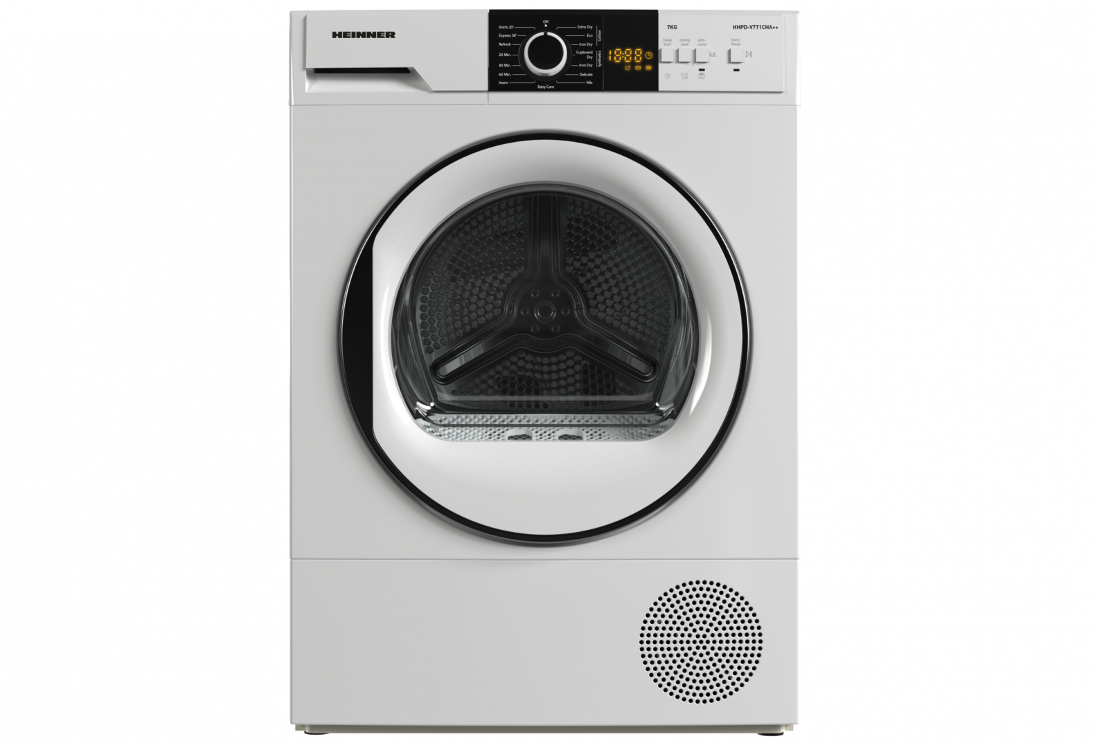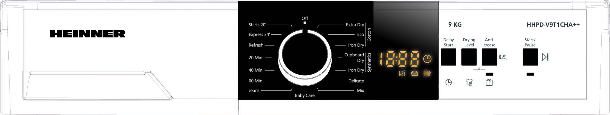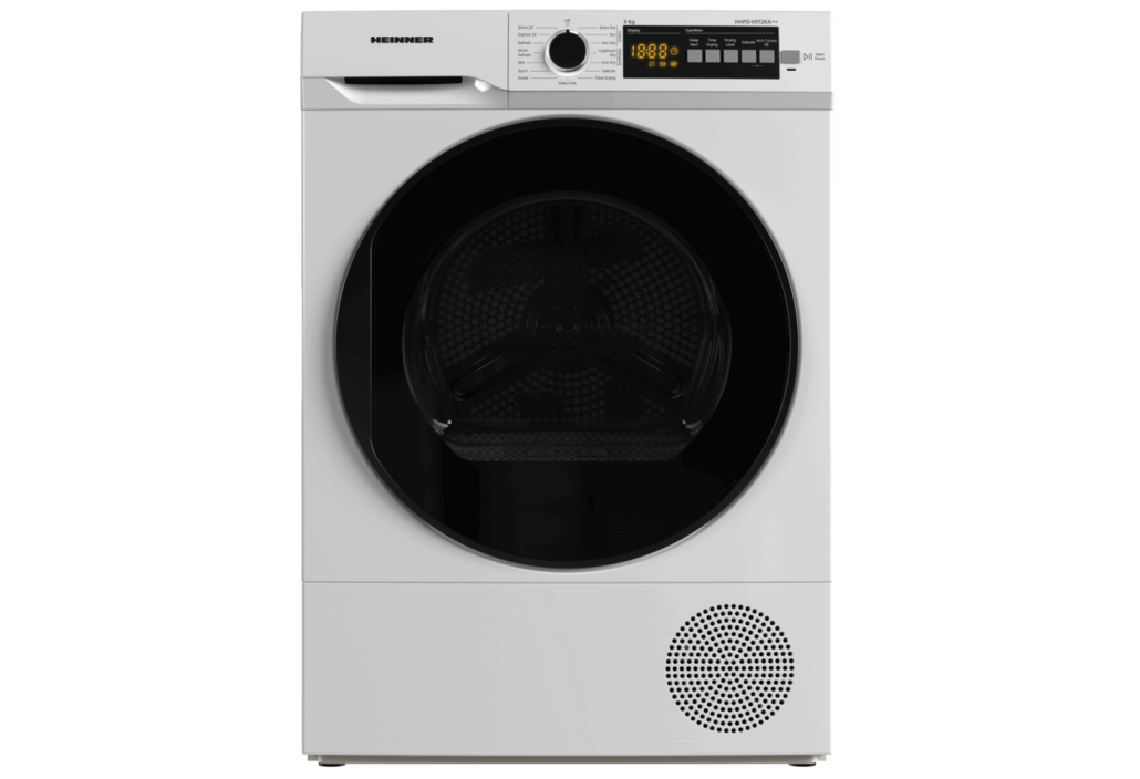 HEAT PUMP DRYER HEINNER HHPD-V9T2KA++, LOADING CAPACITY 9KG, ENERGY EFFICIENCY CLASS A++, PUREBEAM+ TECHNOLOGY, 15 DRYING PROGRAMS, LED DISPLAY, SHIRTS 20 MIN, EXPRES 34 MIN, BABY CARE PROGRAM, DELAY START, ANTI-CREASE FUNCTION, REVERSIBLE DOOR, DRUM LIGHT, DRYING LEVEL SELECTION, LINT FILTER INDICATOR, WATER TANK FULL INDICATOR, CHILD LOCK, DIMENSIONS (WXDXH): 59.6 X 60.9X84.5 CM, COLOR: WHITE