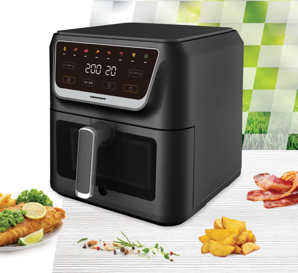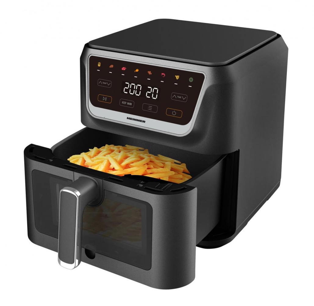 HOT AIR FRYER HEINNER HAF-H8BK1700, POWER: 1700W, CAPACITY: 8L, DIGITAL DISPLAY & TOUCH CONTROL, 8 PRESET PROGRAMS, TEMPERATURE 80-200?, SEE-THROUGH WINDOW, AUTO-OFF, NON-STICK COATING & BAKING TRAY, BLACK