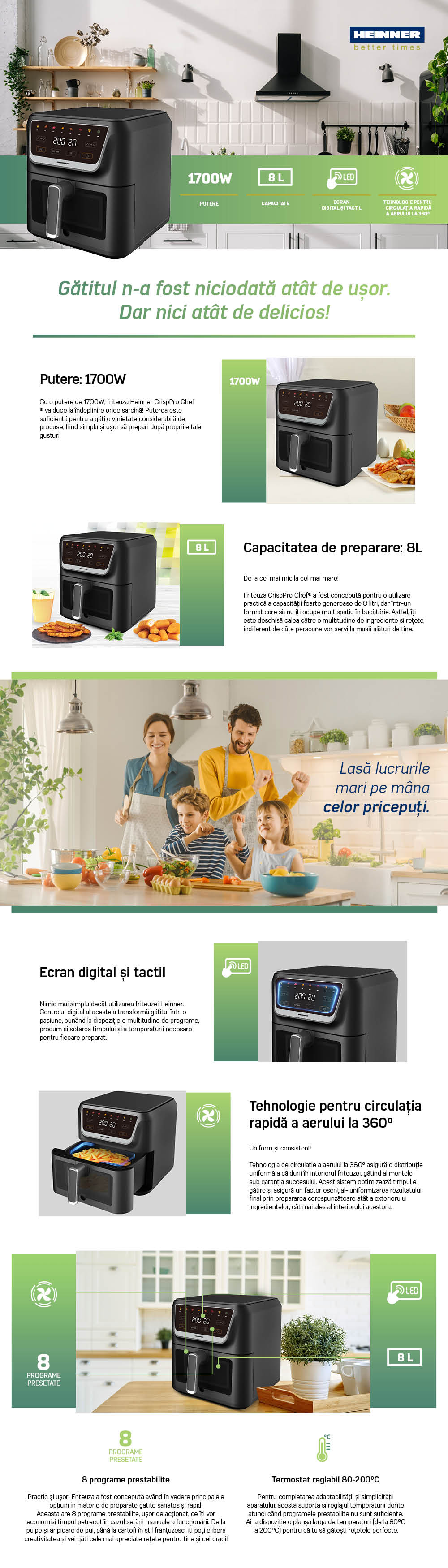 HOT AIR FRYER HEINNER HAF-H8BK1700, POWER: 1700W, CAPACITY: 8L, DIGITAL DISPLAY & TOUCH CO
