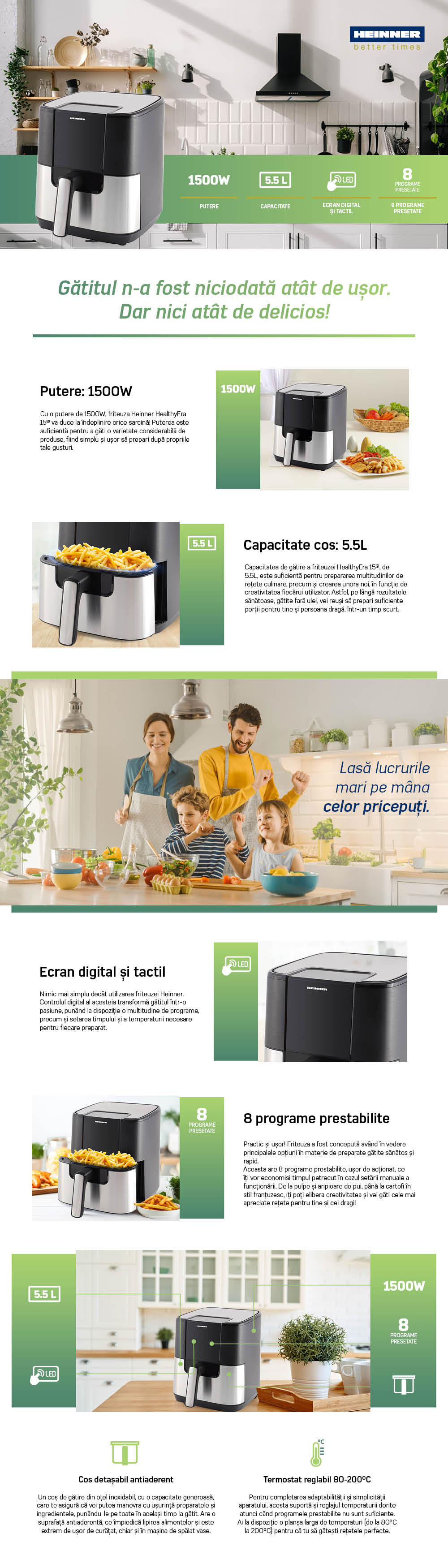 HOT AIR FRYER HEINNER HEALTHYERA 15 HAF-H6BKS1500, 1500W, CAPACITY: 5.5L, DIGITAL DISPLAY