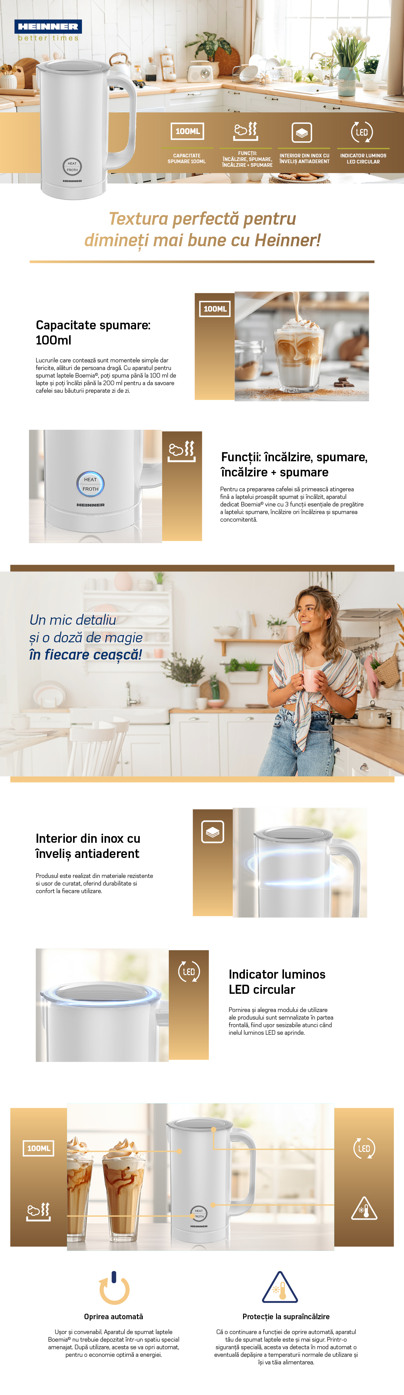 MILK FROTHER HEINNER HMFR-450WH, 450W, FROTHING CAPACITY: 100ML, HEATING CAPACITY: 200ML,