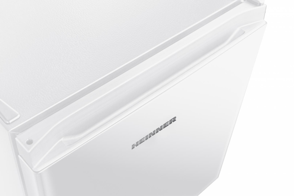 Mini-bar refrigerator Heinner HMB-N45F+, energy efficiency class: F, total capacity: 45L, mechanical control with adjustable thermostat, 1 glass shelf, reversible door, dimensions (WxDxH): 44.5 x 46.8 x 50 cm, color: white