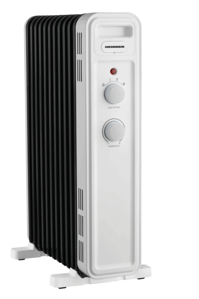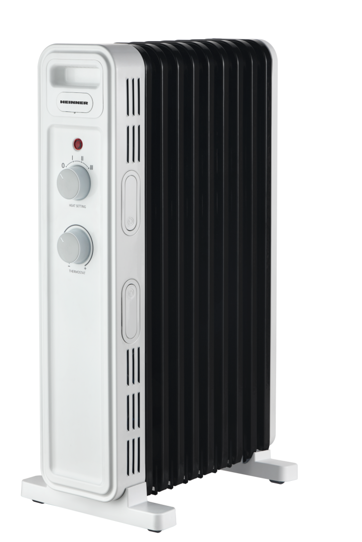 OIL FILLED RADIATOR HEINNER HOH-M13WH-BK, 13 FINS: 125x545 mm, 3 HEATING SETTINGS: 1000W/1300W/2500W, ADJUSTABLE THERMOSTAT, OVERHEAT PROTECTION, TIP OVER SWITCH, WHEELS, CABLE STORAGE, COLOR: WHITE & BLACK