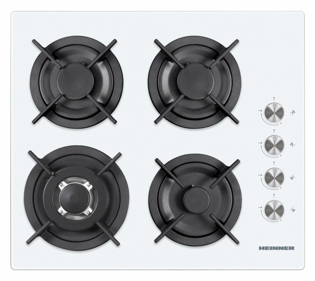 PLITA INCORPORABILA HEINNER HBH-V4IWF-GWH, GAZ, 4 ARZATOARE, WOK, GRATAR FONTA, CONTROL LATERAL, ARINDERE ELECTRICA, DISPOZITIV DE SIGURANTA, DUZE GPL INCLUSE, DIMENZIUNI (LXA): 59X52 CM, CULOARE: STICLA ALBA