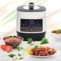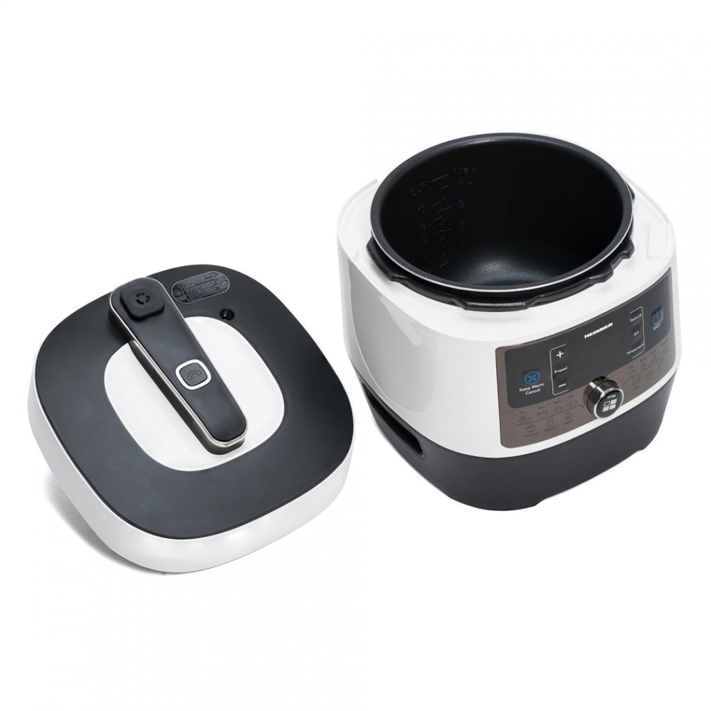 Pressure cooker Heinner Alacarte HPCK-6WH, 1000W, cooking under pressure, max pressure: 0.8bar, max capacity: 4.5l, adjustable pressure (low, med, high), detachable non-stick pot, 14 preset cooking programs, do it yourself program, timer - 24 hours, adjustable temperature, safety system, LED display, button for releasing pressure, keep warm function, compact and elegant design, white