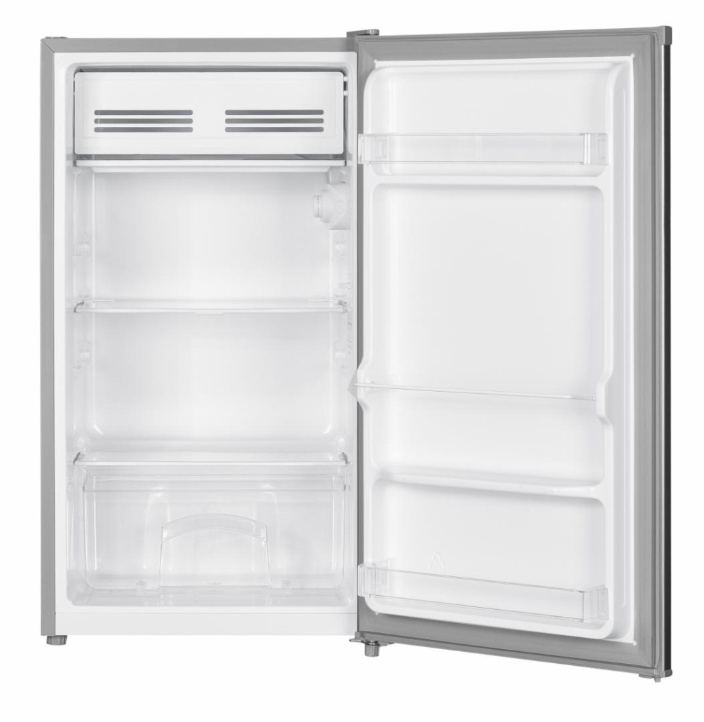 Refrigerator Heinner HF-HM90SE++, energy efficiency class E, total capacity: 90 L, LED light, 1 glass shelf, dimensions (WxDxH): 48 x 45 x 85 cm, color: Silver