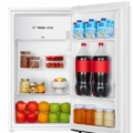Single door refrigerator Heinner HF-N94F+, Energy efficiency class: F, Total capacity: 94L, Mechanical control with adjustable thermostat, LED light, 1 glass shelf, 1 compartment for fruits and vegetables, Reversible door, Dimensions (WxDxH): 47.5 x 44.8 x 84.2 cm, Colour: White