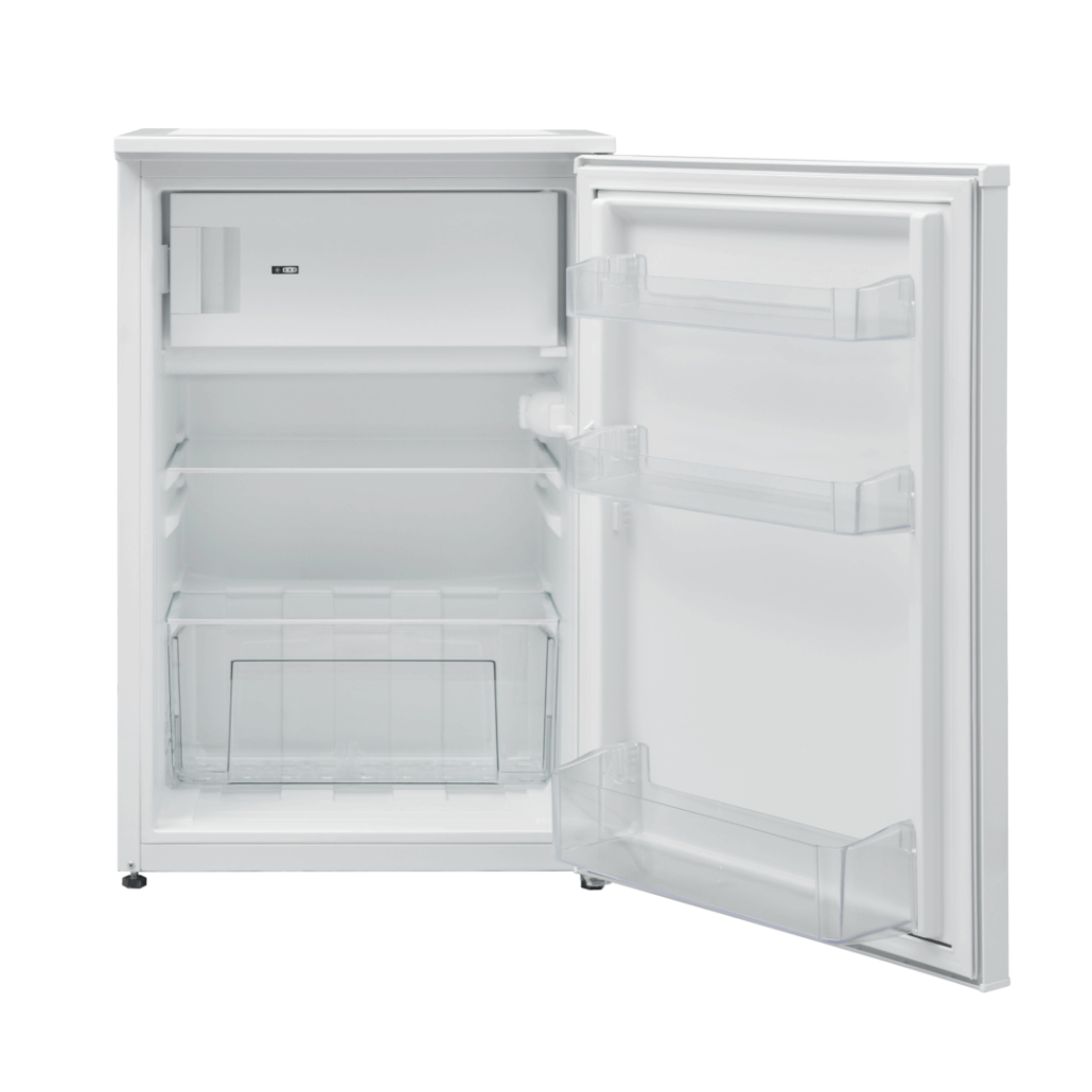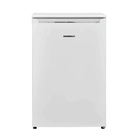Refrigerator Heinner HF-V122F+, energy efficiency class F, total capacity: 122L, fridge capacity: 125L, freezer capacity: 17L, mechanical control with adjustable thermostat, LED light, Super freezing function, 1 glass shelf, 1 compartment for fruits and vegetables, usa reversibila, freezing capacity: 2.6kg/24h, product dimensions (WxDxH): 54 x 59.5 x 83.8 cm, color: white