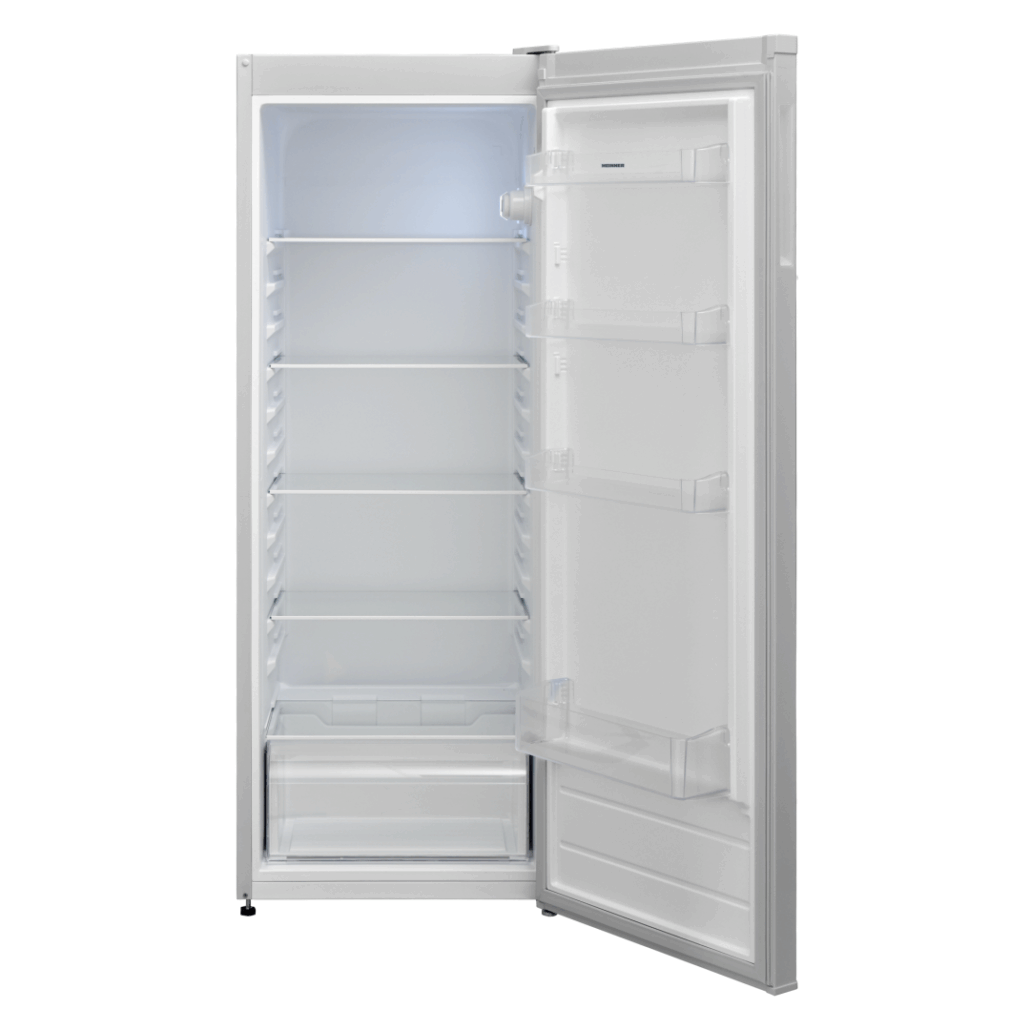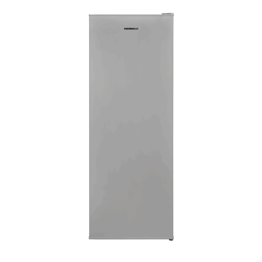 Refrigerator Heinner HF-V255SE++, energy efficiency class: E, total capacity: 255L, fridge capacity: 255L, mechanical control with adjustable thermostat, fridge compartment: 4 glass shelves, compartment for fruits and vegetables, LED light, reversible door, dimensions (WxDxH): 54 x 59.5 x 145.5 cm, color: Silver
