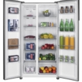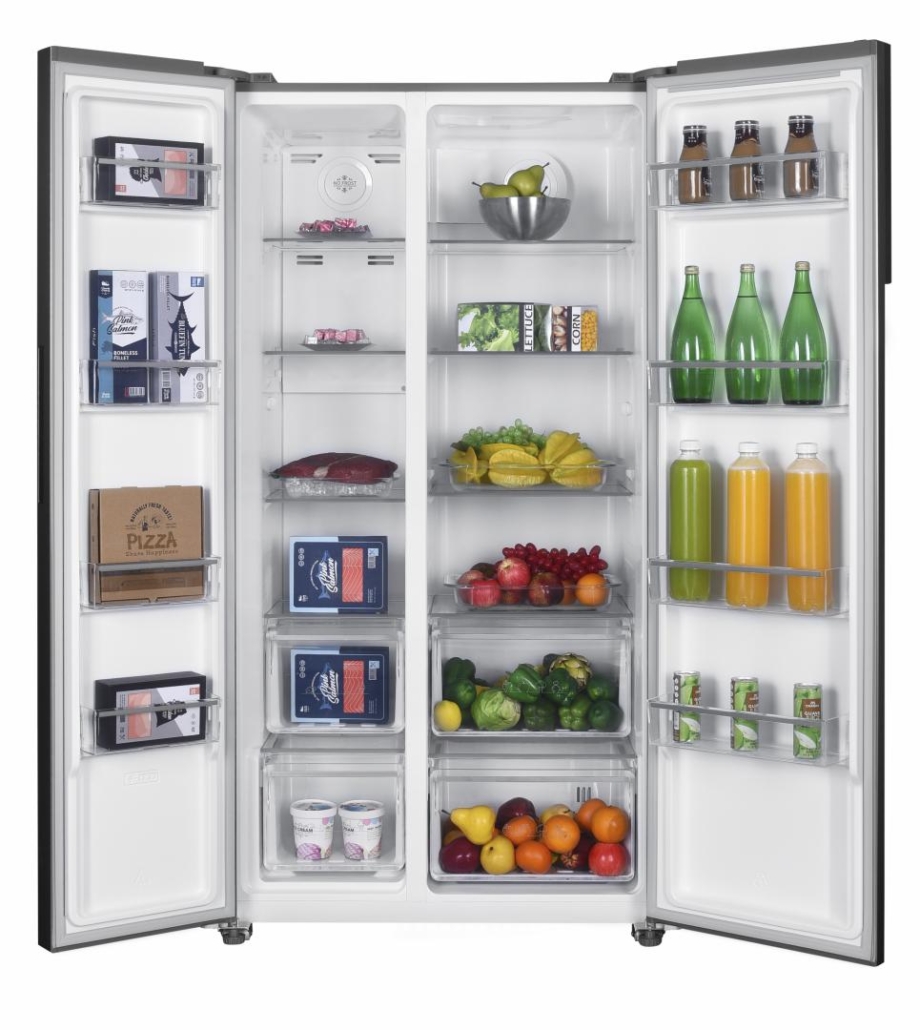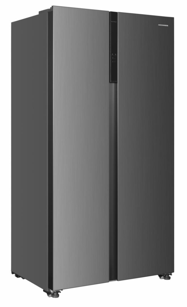 Side by side Heinner HSBS-H532NFXF+, Full No Frost, Energy efficiency class: F, LED display with touch control, Total capacity: 532L, Fridge capacity: 347L, Freezer capacity: 185L, LED light, Smart function, ECO Function, Super Cooling function, Super Freezing function, Open door alarm, Child lock, 3 fridge glass shelves, 2 compartment for fruits and vegetables, 3 freezer glass shelves, 2 freezer drawers, Dimensions (WxDxH): 90 x 66 x 177 cm, Color: Inox look
