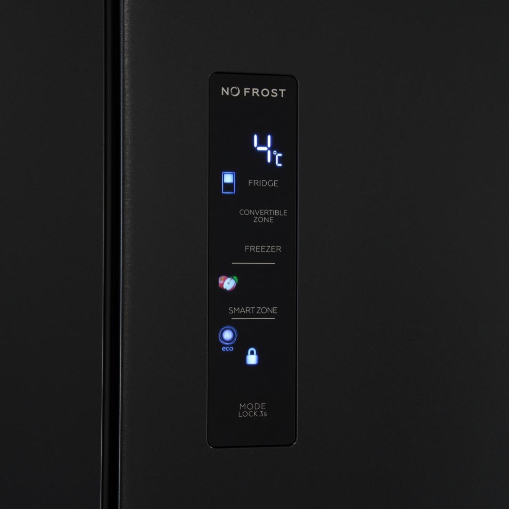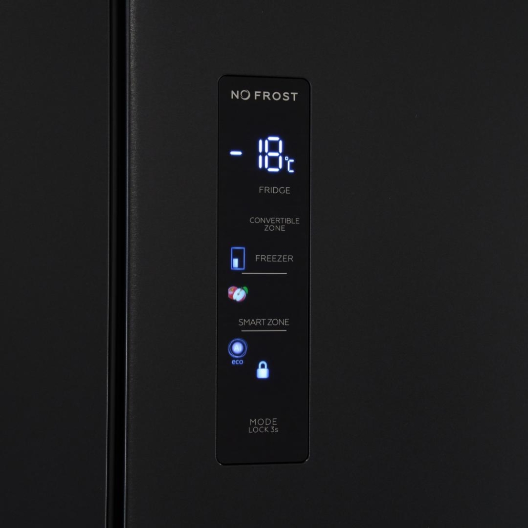 Side by side Multidoor Heinner HSBS-HM505MDSINFDXE++, Slot-in – allows incorporation into kitchen furniture, Total No Frost, total capacity: 505L, fridge capacity: 349L, freezer capacity: 156L, energy efficiency class: E, Inverter compressor, LED display with touch control, Multi Air-Flow system, InoxCool technology, MultiClimate system - 4 zones with independent temperature control, "Holiday“ function, ECO function, Super cooling function, Super freezing function, fridge compartment: 2 glass shelves, compartment for fruits and vegetables, compartment with humidity control, Smart zone – temperatures between -3 °C and +3 °C, freezer compartment: 4 drawers, 2 pizza trays, fridge/freezer convertible compartment – temperatures between -20 °C and +5 °C, convertible compartment capacity: 80L, LED light, open door alarm, Child lock, dimensions (WxDxH): 90.5 x 59.7 x 190.2 cm, color: Dark inox