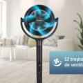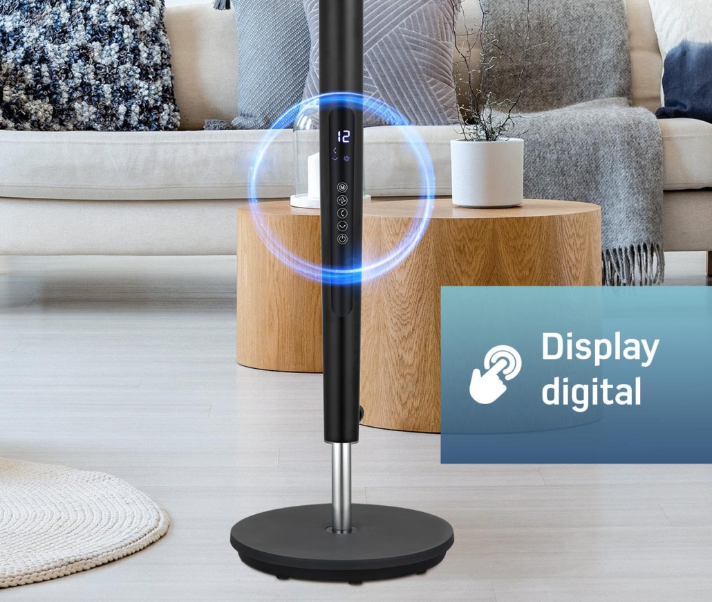 Stand fan HEINNER HSF-MAT24DC-GY, aromatherapy tray, 5 blades, TURBO mode, 12 speeds, DC motor, 12H timer, LED display, touch control, remote control, 3 wind modes: TURBO /normal/sleep; 30-60-120° horizontal oscilation, 30-60-135° vertical oscilation, power: 20W, height: 112 cm, grey