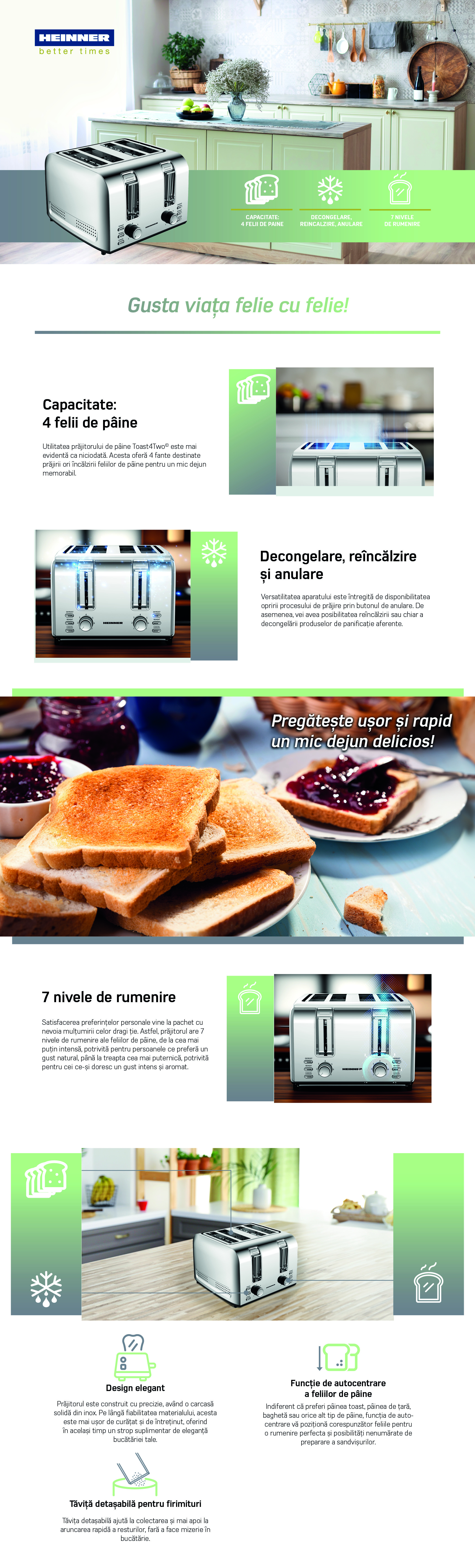TOASTER HEINNER HTP-4S1500SS, 1500W, CAPACITY: 4 SLICES, 7 BROWNING LEVELS, FUNCTIONS: REH