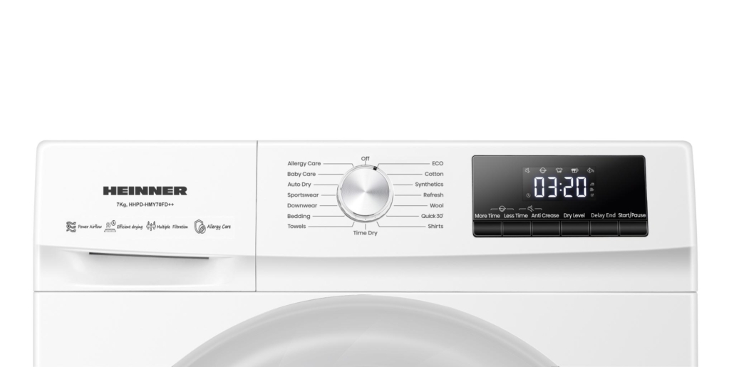 USCATOR DE RUFE CU POMPA DE CALDURA HEINNER HHPD-HMY70FD++, CAPACITATE INCARCARE 7KG, CLASA ENERGETICA D, DISPLAY DIGITAL, LUMINA CUVA, 15 PROGRAME, SUPORT INCALTAMINTE, PROGRAM BABY CARE, PROGRAM LANA, PROGRAM ECO, FUNCTIE ANTI SIFONARE, SELECTOR NIVEL USCARE, BLOCARE ACCES COPII, INDICATOR CURATARE FILTRU SCAME, INDICATOR REZERVOR COLECTARE APA PLIN, DIMENSIUNI(LxAxI): 59.5x58x84.5, CULOARE: ALB