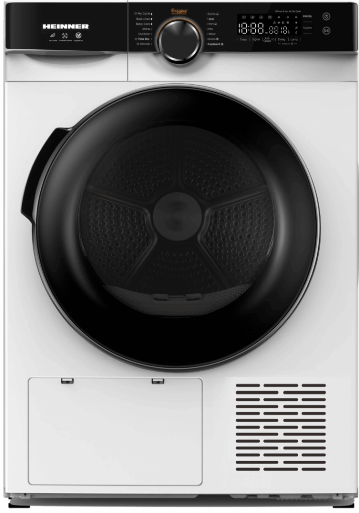 USCATOR DE RUFE CU POMPA DE CALDURA HEINNER HHPD-M8K3A++, CAPACITATE INCARCARE 8KG, CLASA ENERGETICA D, 14 PROGRAME DE USCARE, DISPLAY LED, PROGRAM RAPID CAMASI, FUNCTIE START INTARZIAT, FUNCTIE ANTI-SIFONARE, LUMINA CUVA, SELECTOR NIVEL USCARE, INDICATOR CURATARE FILTRU SCAME, INDICATOR REZERVOR COLECTARE APA PLIN, BLOCARE ACCES COPII, DIMENSIUNI ( LXAXI): 59.5X60X84.5 CM, CULOARE: ALB