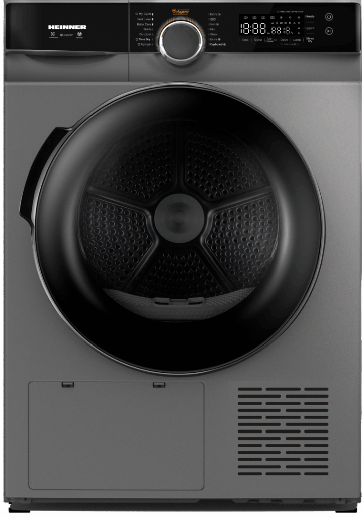 USCATOR DE RUFE CU POMPA DE CALDURA HEINNER HHPD-M9K3SA+++, CAPACITATE INCARCARE 9KG, CLASA ENERGETICA C, MOTOR INVERTER, 14 PROGRAME, CONTROL TOUCH, DISPLAY DIGITAL, PROGRAM BABY CARE, PROGRAM LANA, PROGRAM STERILIZARE, FUNCTIE ANTI-SIFONARE, MEMORARE PROGRAM PREFERAT, LUMINA CUVA, SELECTOR NIVEL USCARE, INDICATOR CURATARE FILTRU SCAME, INDICATOR REZERVOR COLECTARE APA PLIN, BLOCARE ACCES COPII, DIMENSIUNI ( LXAXI): 59.5X67.5X84.5 CM, CULOARE: ARGINTIU
