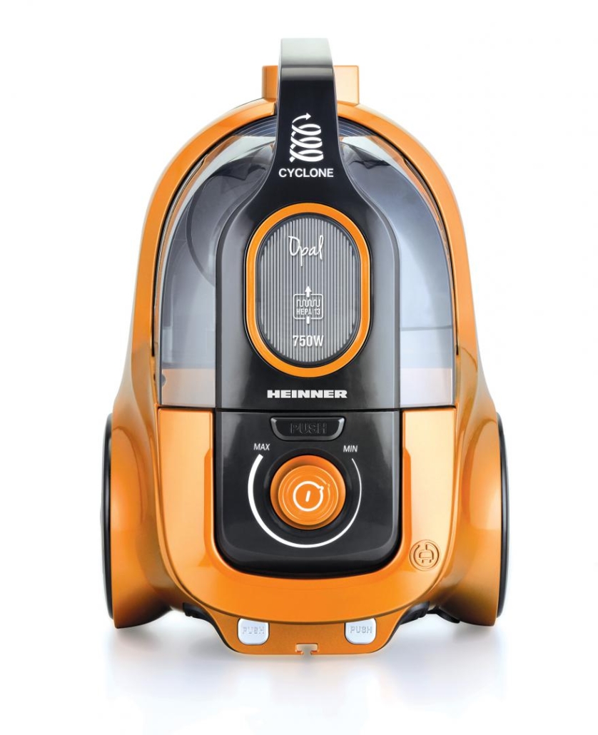 Vacuum cleaner Heinner Opal 750 HVC-V750OR, 750W, cyclonic system, double HEPA 13 filter, suction power: >160W, variable speed control, dust bin capacity: 2.2l, metal telescopic tube, 2 in 1 nozzle, sofa brush, automatic cord rewind, orange