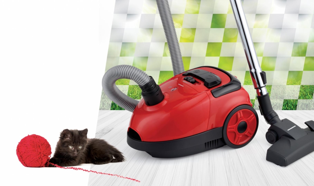 Vacuum cleaner Heinner Petunia HVC-VB750RD, 750W, H11 HEPA filter, suction power: > 180W, dust bag capacity 1.6 l, metal telescopic tube, eco floor brush, variable power control, accessory: sofa brush, crevice brush, automatic cord rewinder, red