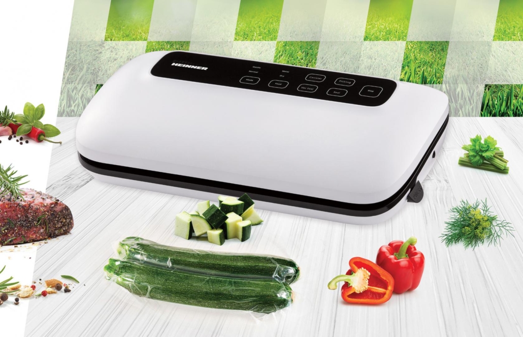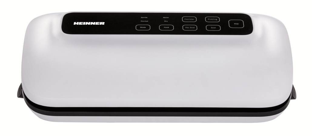 Vacuum sealer Heinner Infinity Pack HAV-EDC120WH, vacuuming and sealing, wet and dry vacuuming, seal only function, canister vacuuming, marinate function, DC motor, touch control, two modes: gentle and normal, 5 bags 20x30cm included, 1 roll bag 20x200 cm included, hose for canisters vacuuming, built-in cutter, built-in vacuum Roll storage, compatible with bags width 28 cm, vacuum speed: 12L/min, vacuum pressure max: 80Kpa, working power: 120W, color: white